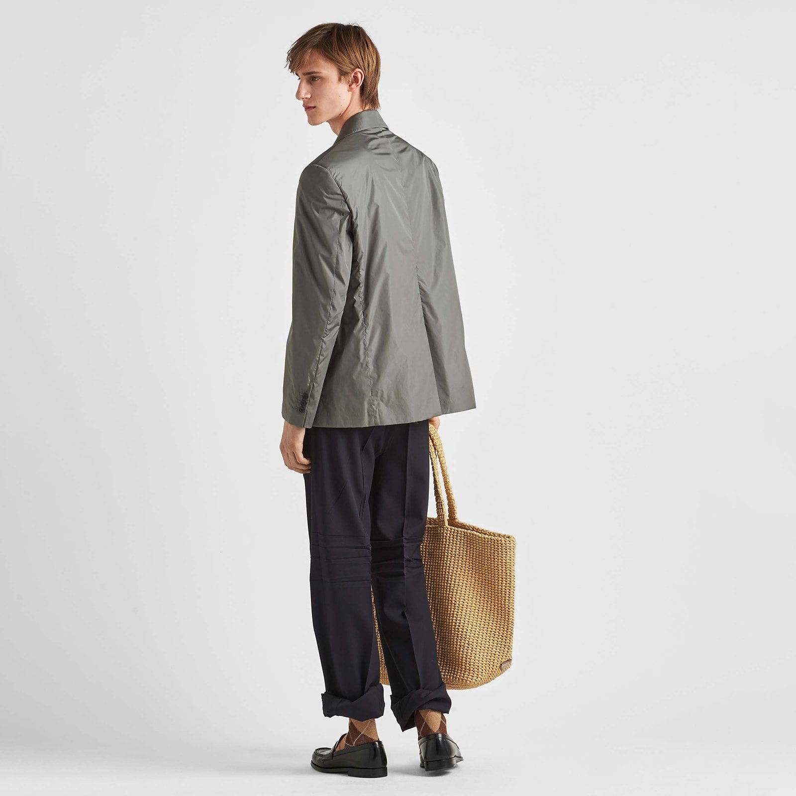 New textures and details redefine wardrobe classics presented with a dual character that combines formal and casual. This tailored jacket features a single-breasted silhouette with straight lines, defined by classic lapels and back vent. The emblematic fabric triangle logo completes the style with a distinctive touch.