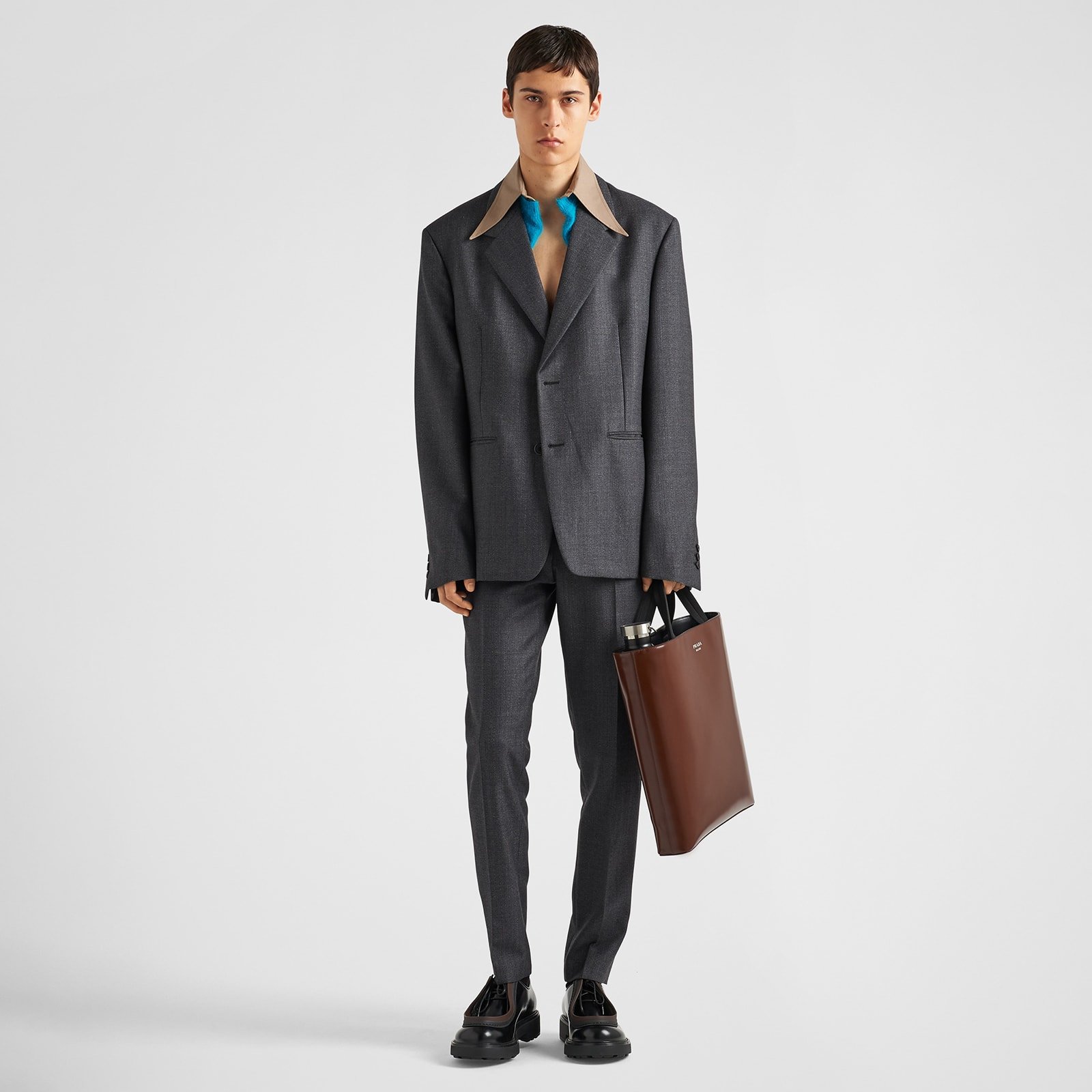 This wool jacket defined by a straight silhouette introduces the idea of new formal attire that is simultaneously comfortable and sophisticated. Emblematic sartorial fabrics meet refined silhouettes in an original mix of fine tailoring and sophisticated modernity.