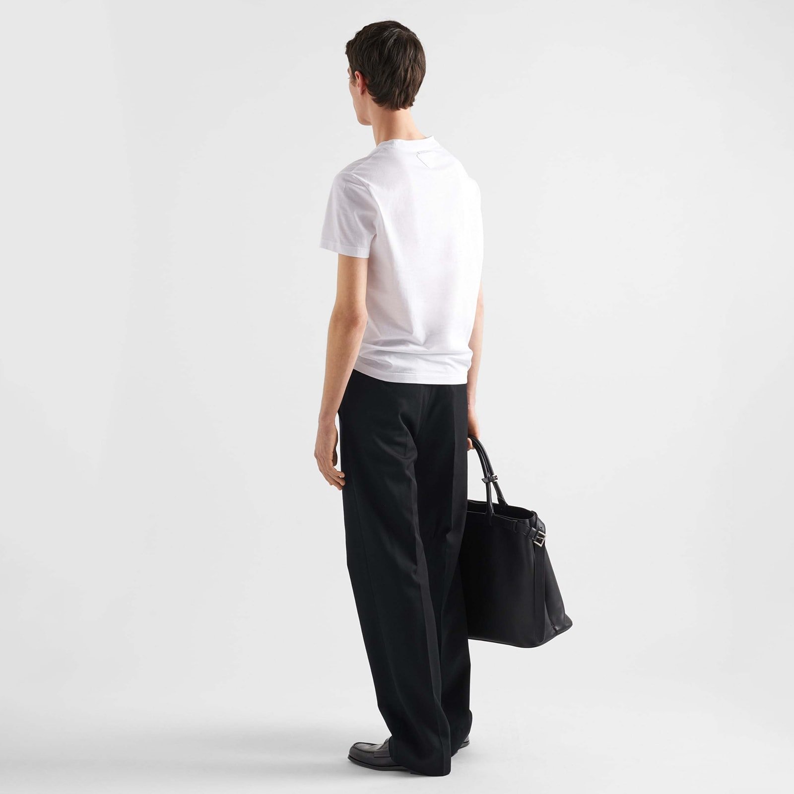This short-sleeved cotton tee with a slim fit is enhanced with a ribbed knit crew-neck and triangle logo on the back.