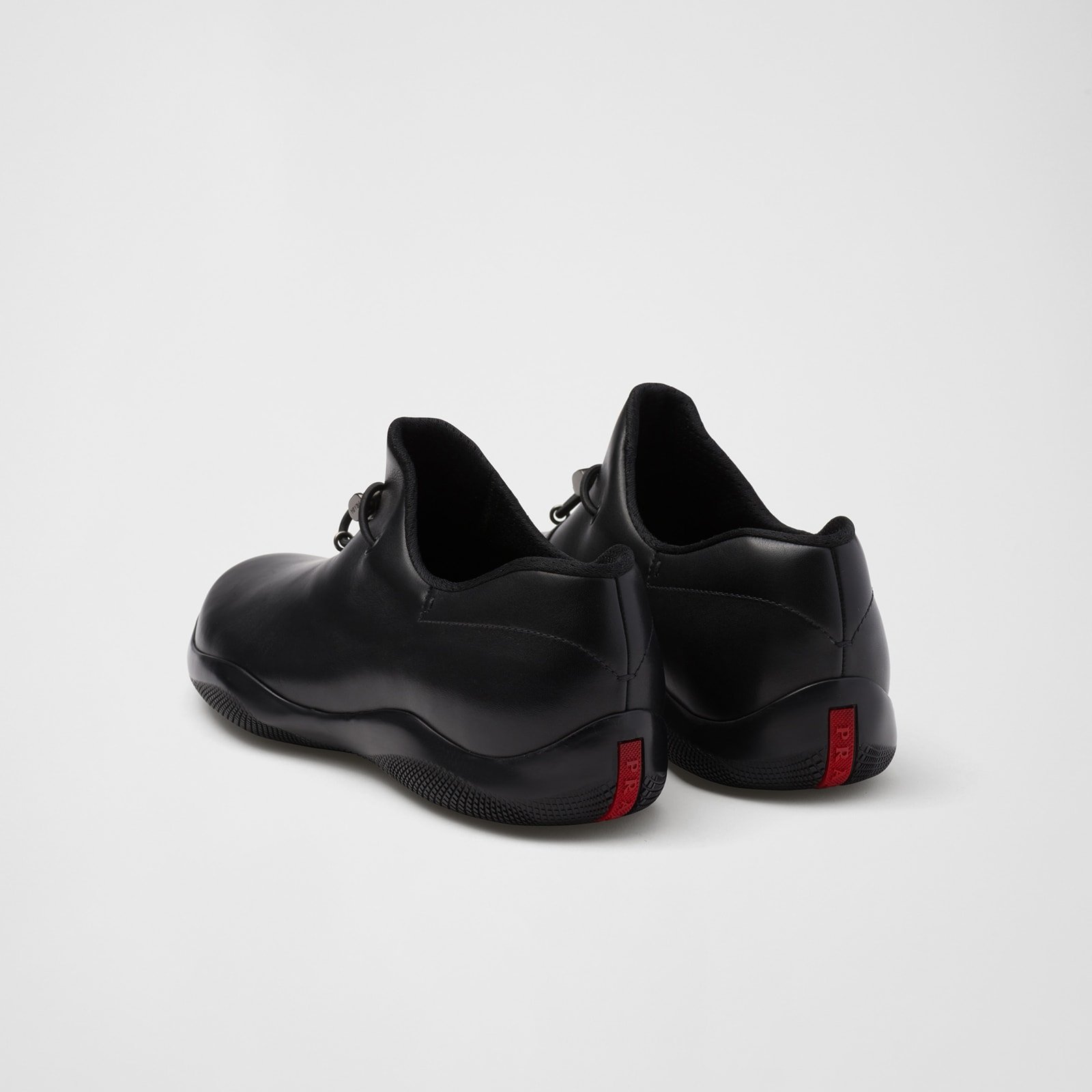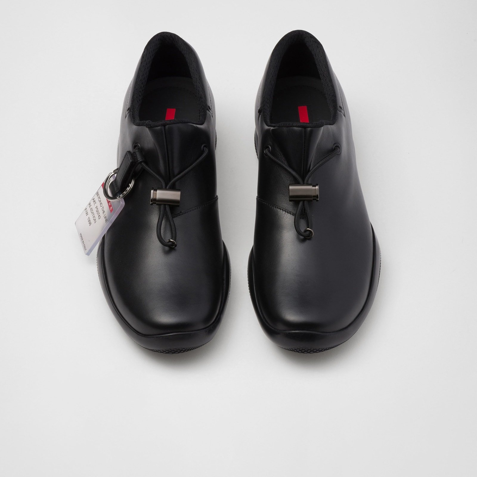 These sporty, minimalist sneakers are inspired by the iconic Prada Linea Rossa archive style presented during the 1998 Fall/Winter show. The innovative, dual character of the original design is recalled by the revolutionary rubber soles, while the matte leather introduces a refined modern touch. The sleek, tapered silhouette is enriched by the simple detail of the elastic cord on the upper and is decorated with the distinctive Linea Rossa logo.