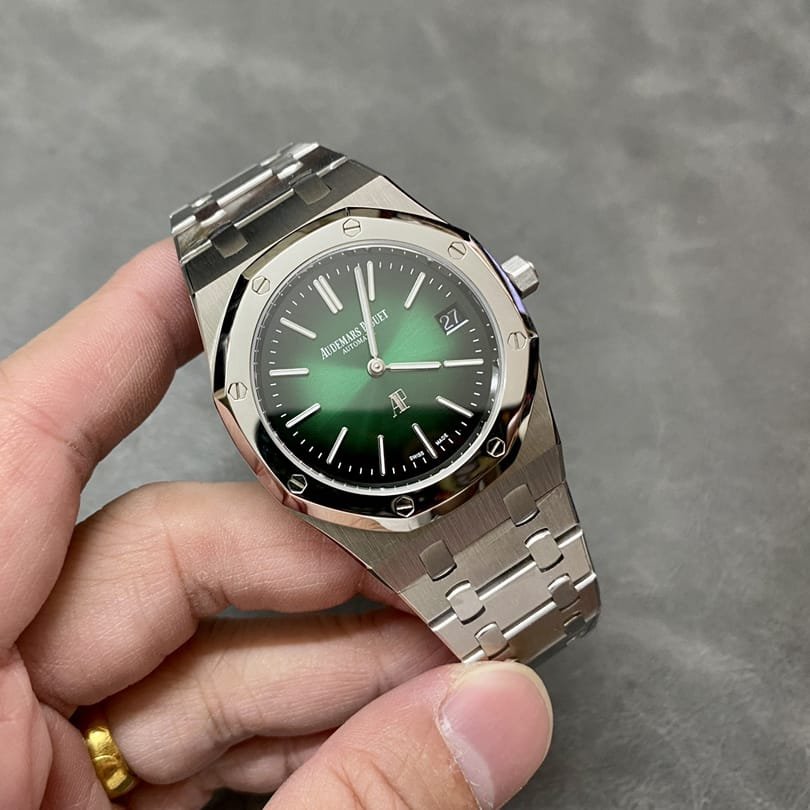 This Men’s Replica AP watch Audemars Piguet Royal Oak has an attractive Green Dial with Index Dial Markers.
