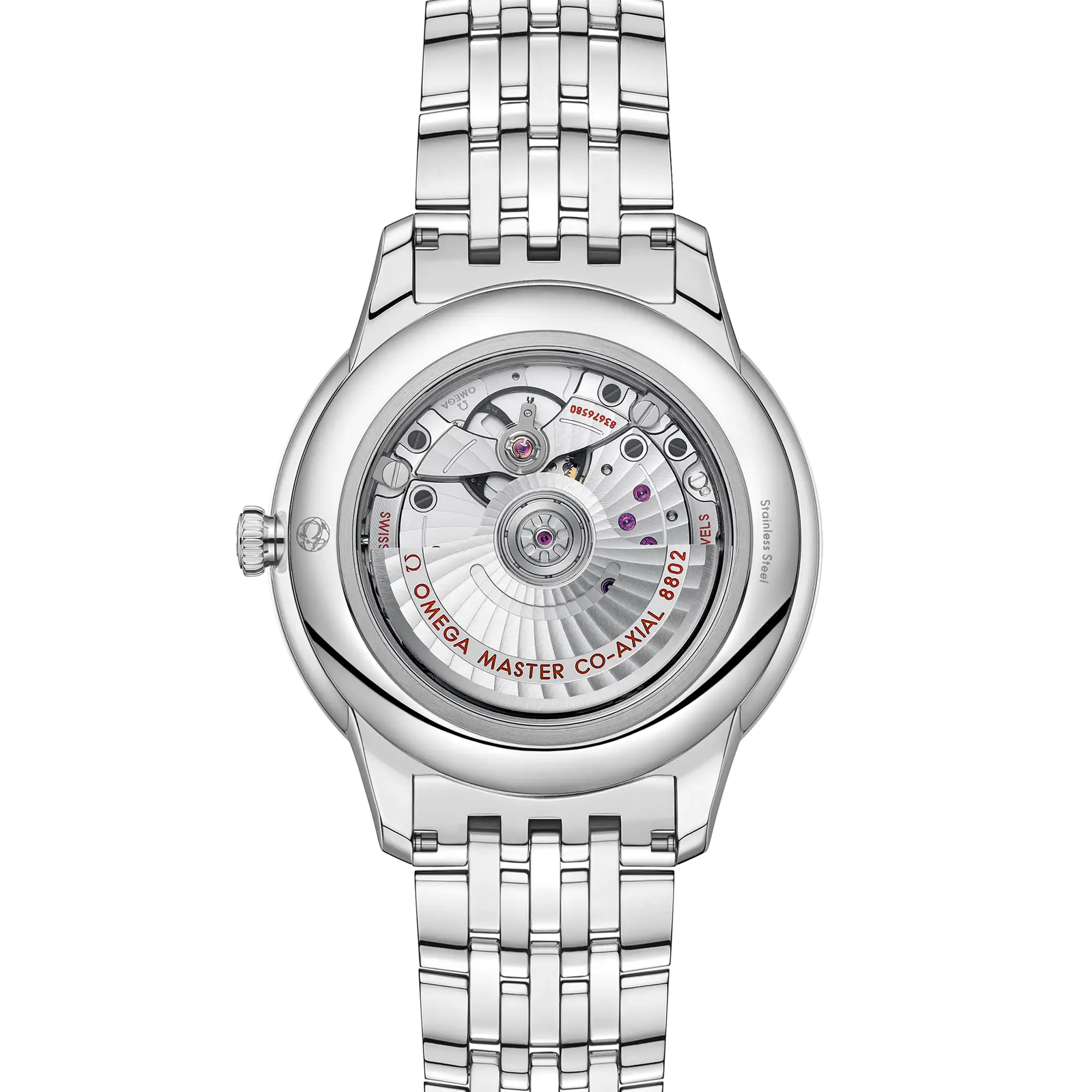 This Master Chronometer certified watch is presented on a stainless steel bracelet and is driven by the OMEGA Master Co-Axial Calibre 8802, which can be admired through the scratch-resistant sapphire crystal caseback.