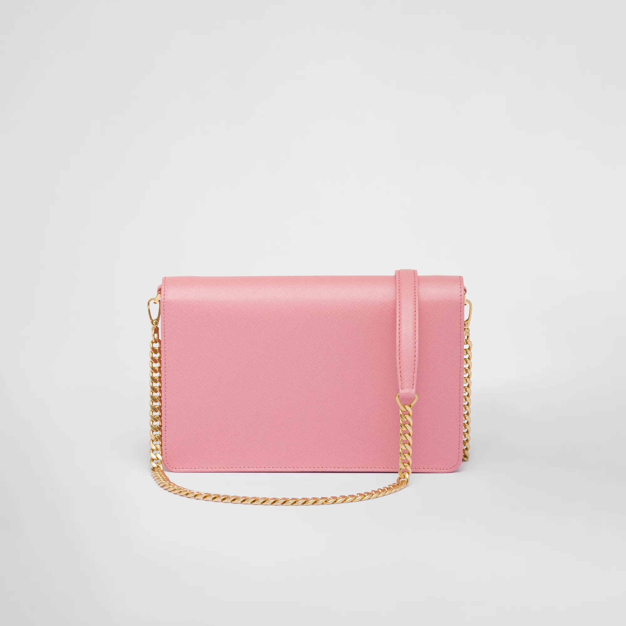 This Saffiano leather mini-bag with shoulder strap has a refined minimalist design. The accessory is decorated with the metal logo.