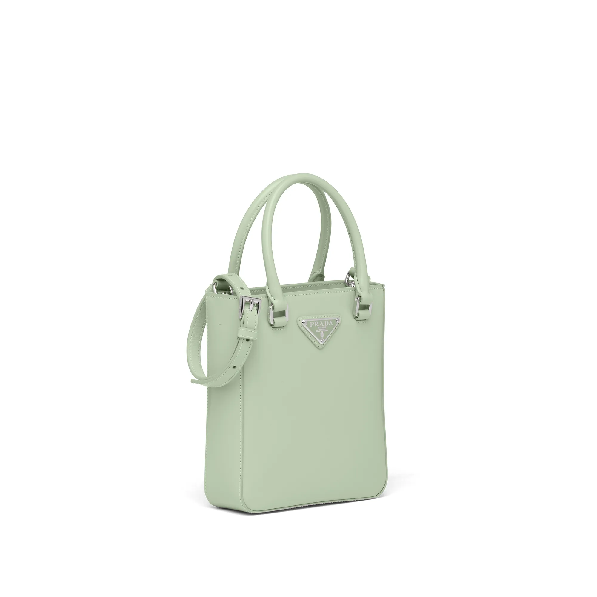 This small tote with a sleek, square design is made of brushed leather, an iconic material of the brand since the nineties and traditionally tied to the luxury world. The design, completed by the detachable leather shoulder strap, can be worn in several ways.