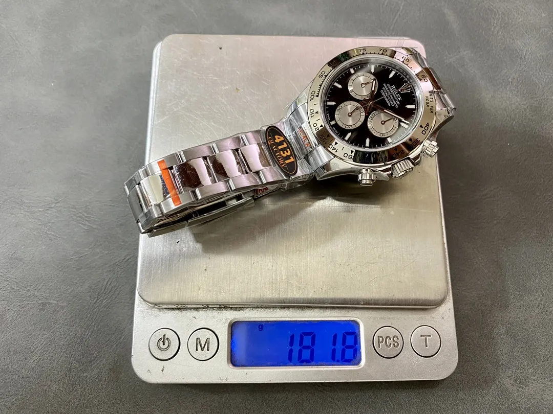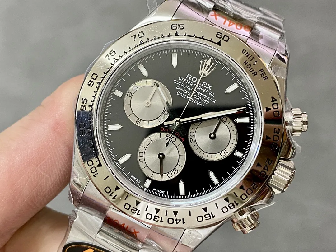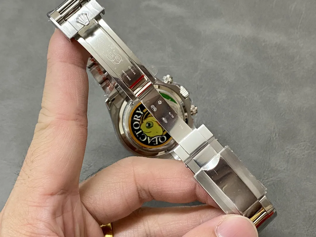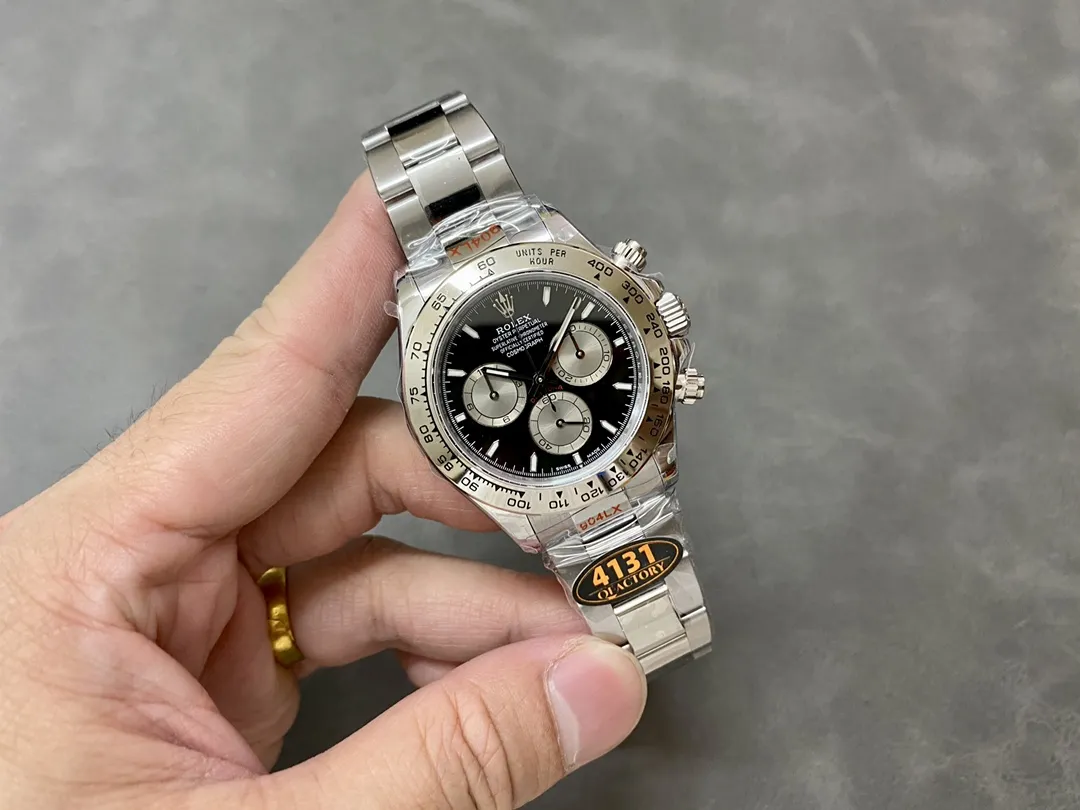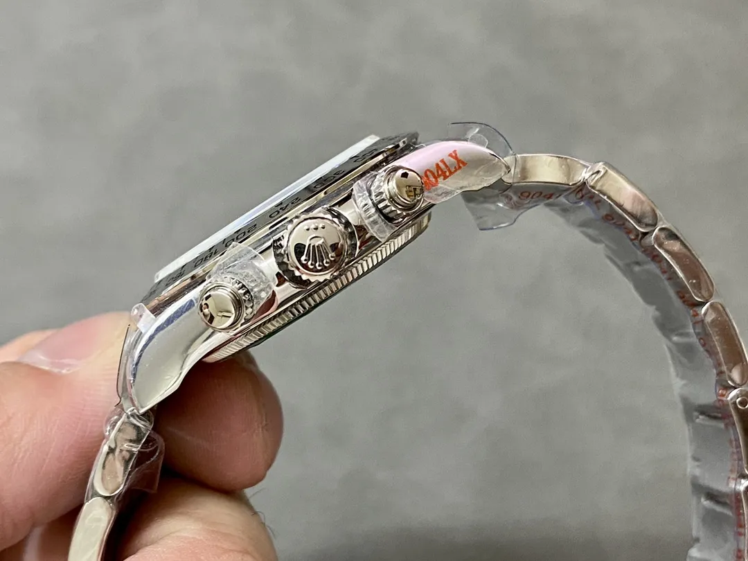 The QF Factory Rolex Daytona Super Counterweight Version has comprehensively analyzed every part of the original movement and created Cal.4130 and Cal.4131 integrated movements that are indistinguishable from the original ones. They not only achieve all functions but are also stable and durable. The factory spends a lot of money to purchase multiple styles of originals for mold production of accessories, ensuring that the watch case and various hardware parts can be used with the originals. At the same time, the original 40mm size and 11.8 thickness are consistent with the originals.