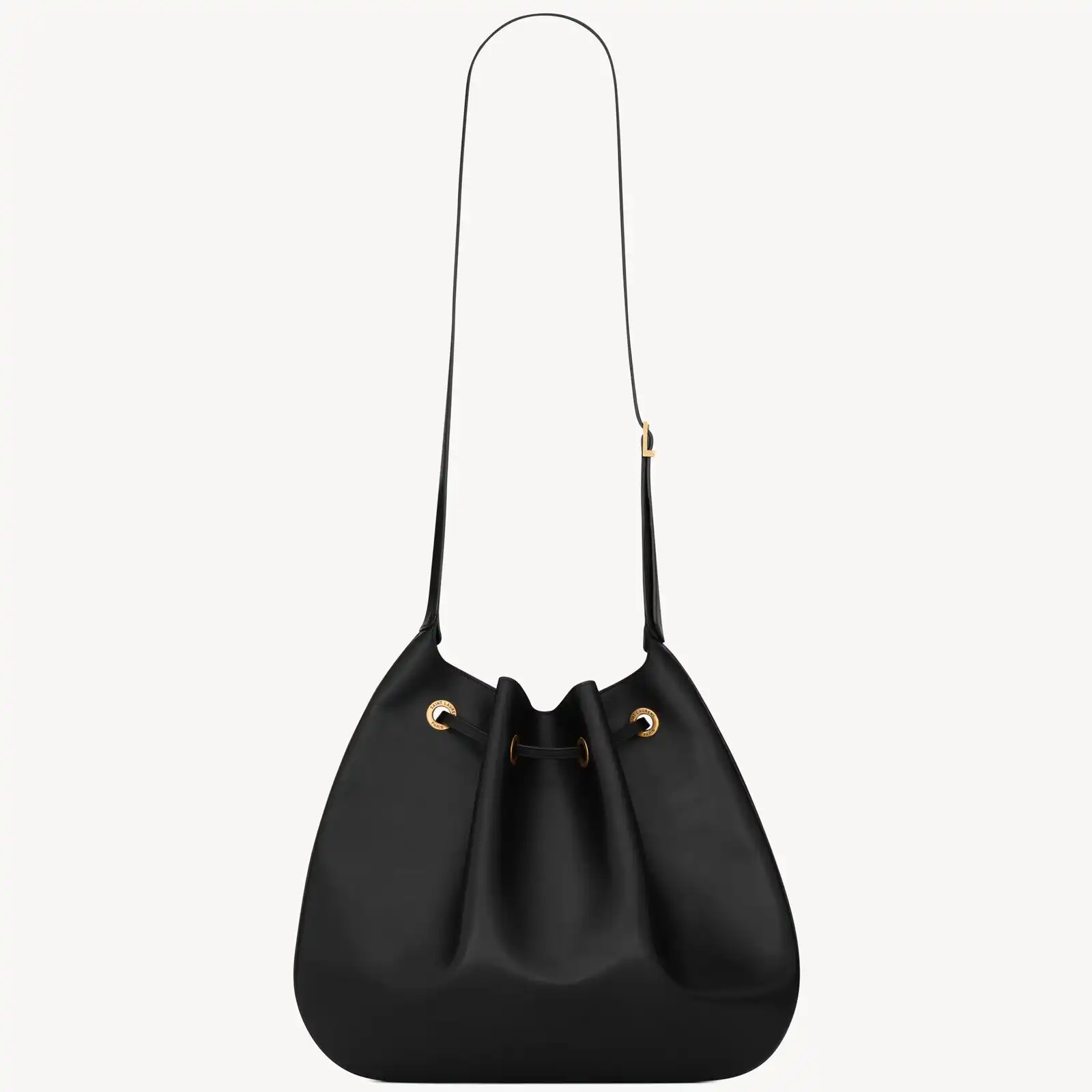 Large Flat Hobo Bag With Leather Drawstring Closure Decorated With A Cassandre Charm, Featuring An Inner Zipped Pouch.