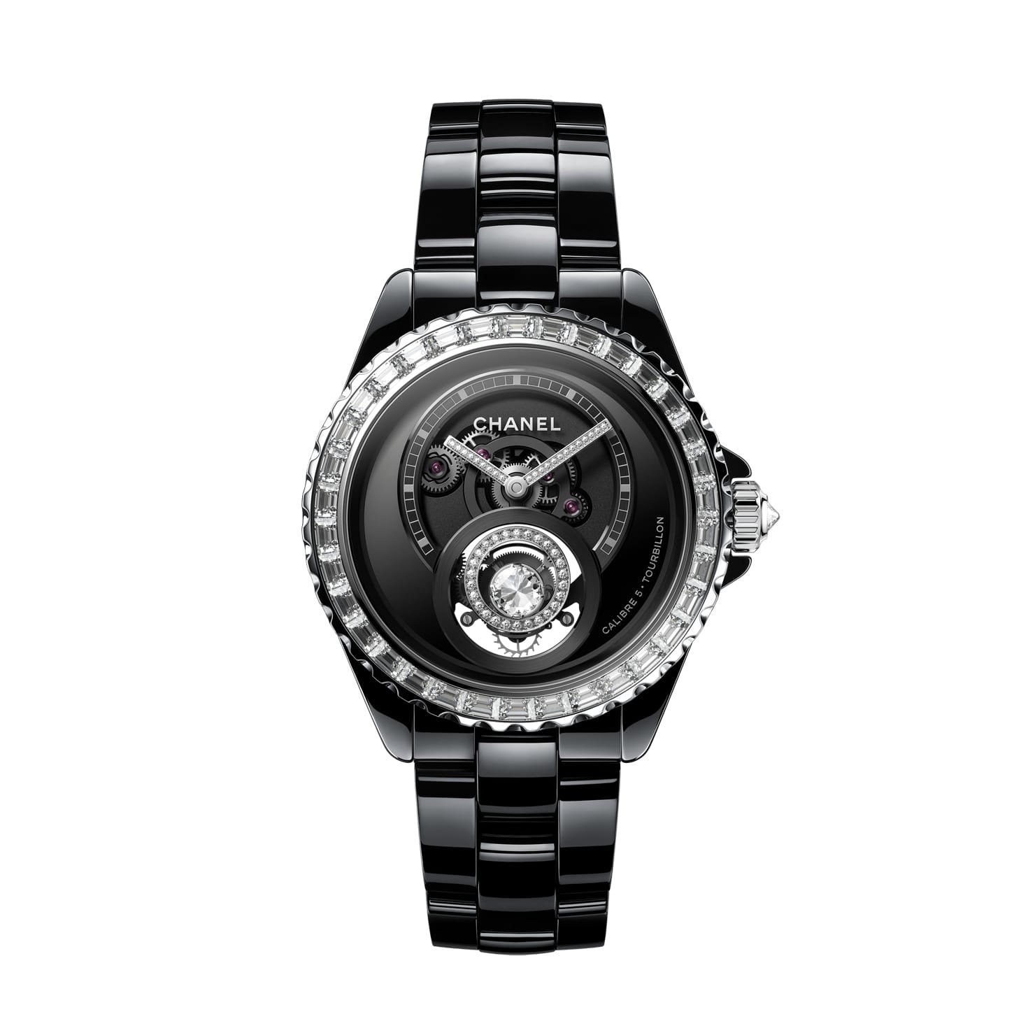 Chanel Watch J12 Diamond Tourbillon Watch Calibre 5 38 mm Black highly resistant ceramic diamond bezel openwork dial